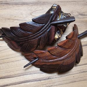 Leaf Design Wood Hair Barrette – Handmade Sono Wood Hair Clip and Shawl Pin from Bali