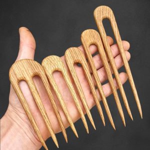 Minimalist Oak Hair Fork Set of 5 – Hand Carved U-Shaped Wooden Bun Holder Collection