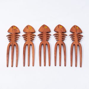 Wooden 3-Prong Hair Fork Set of 5 – Fish Bone Design Natural Wood Hair Sticks for Buns