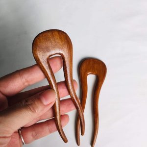 2-Prong Organic Wooden Hair Stick – Handmade Saba Wood Hair Fork and Hair Pin