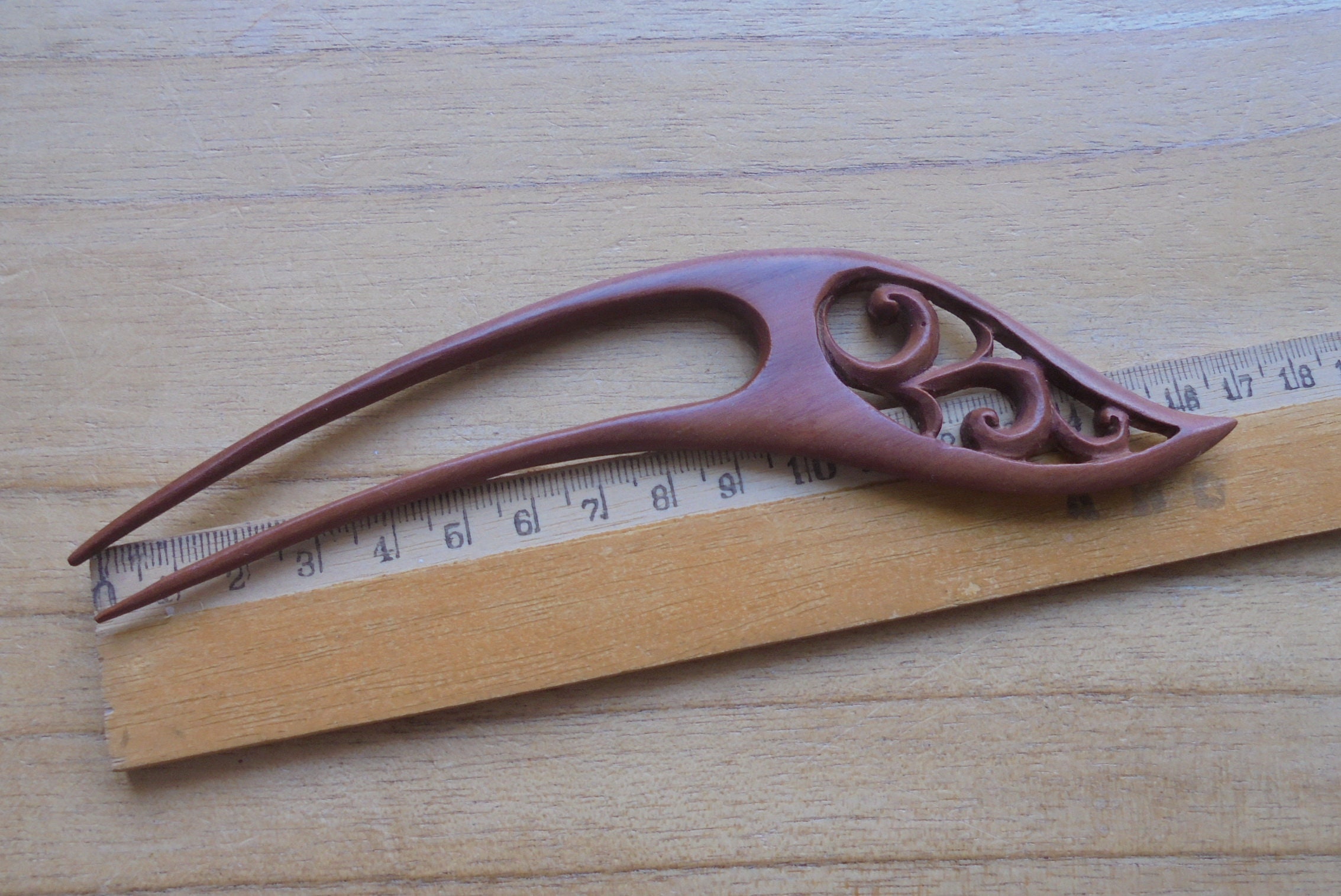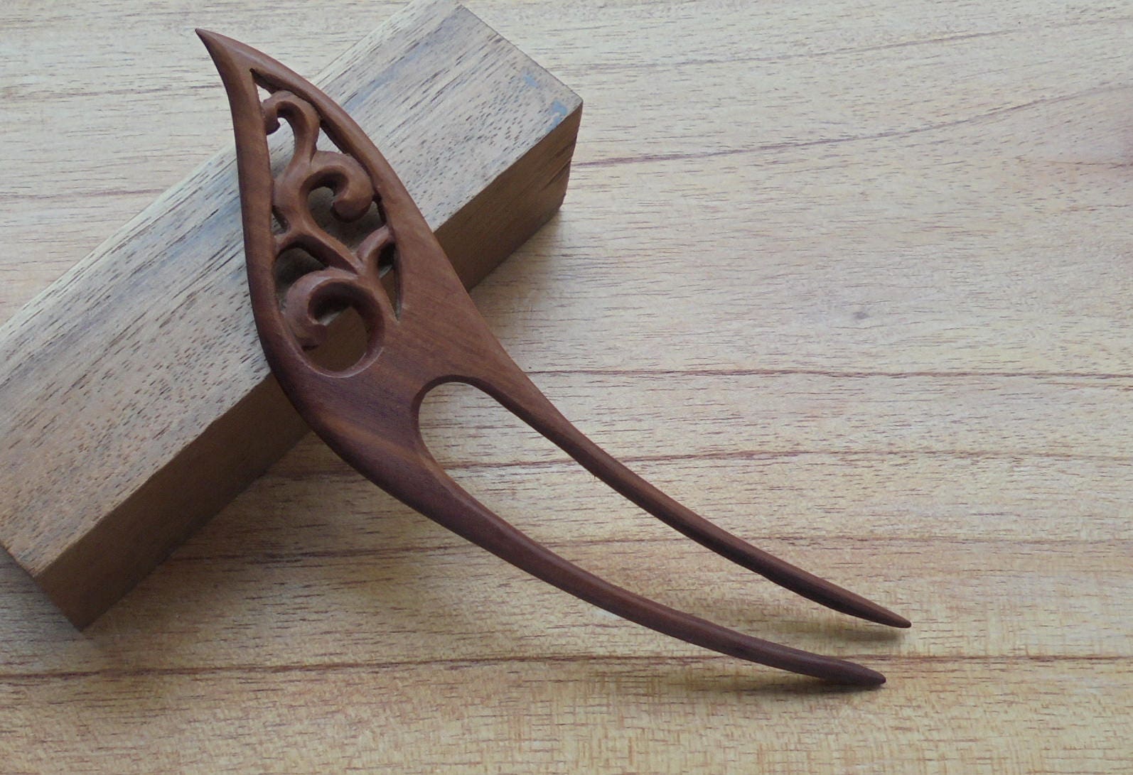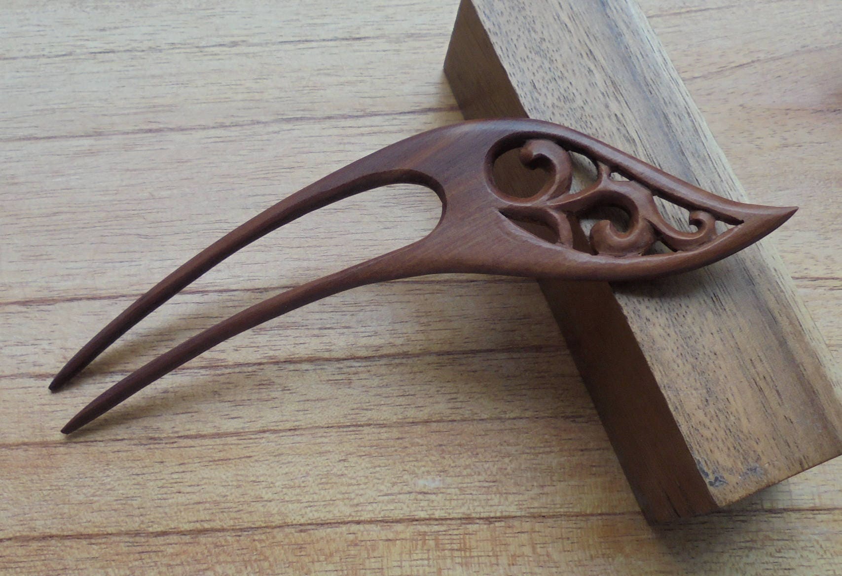 2-Prong Spiral Wooden Hair Stick – Handmade Saba Wood Hair Fork and Hair Pin