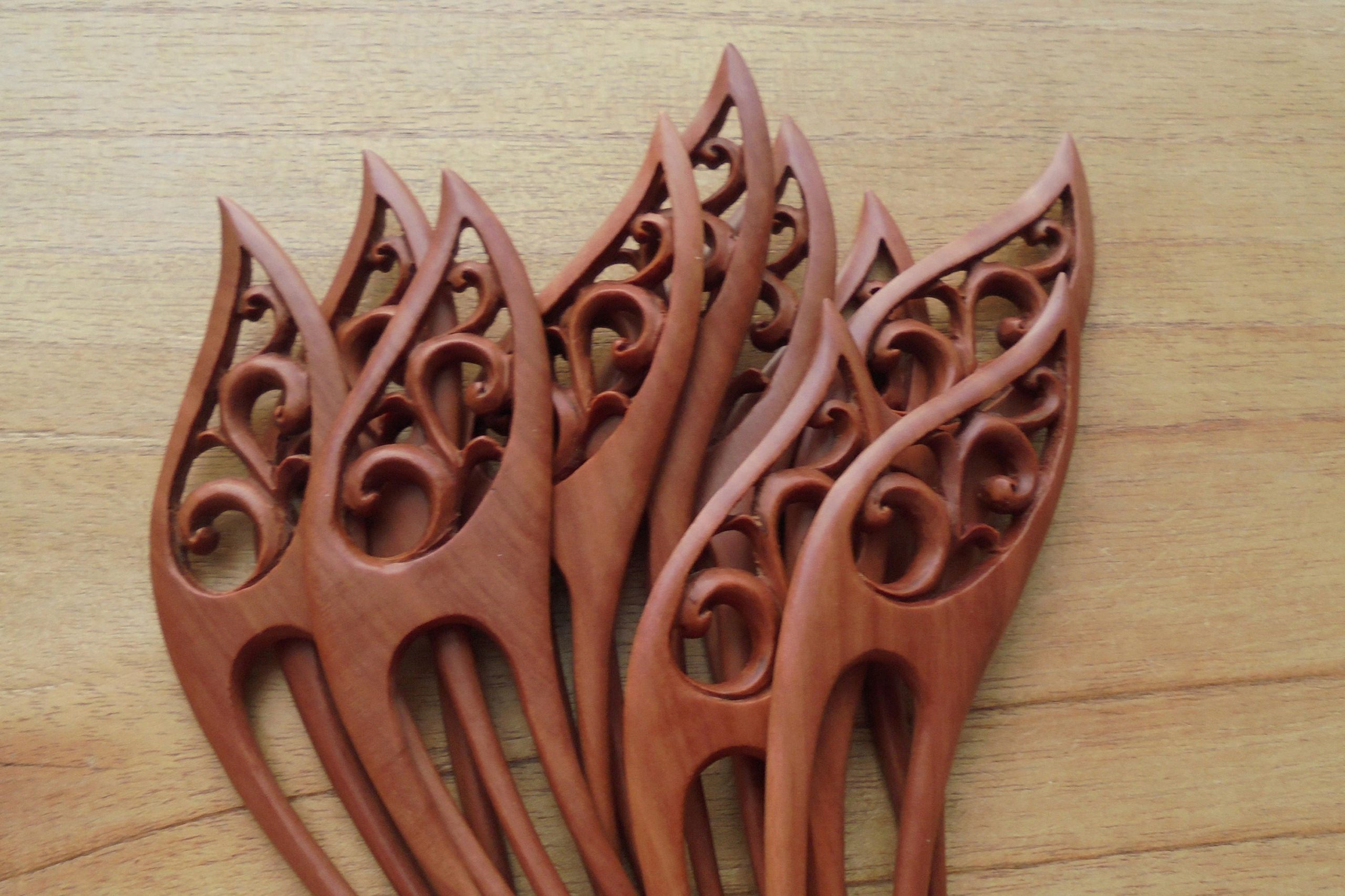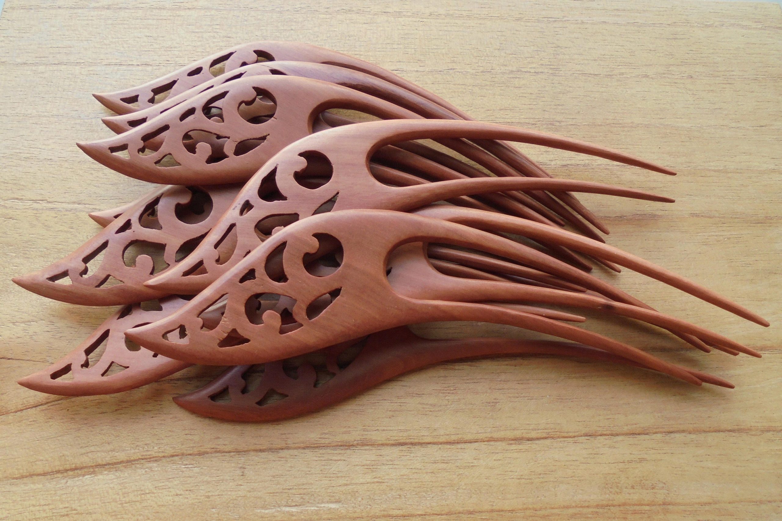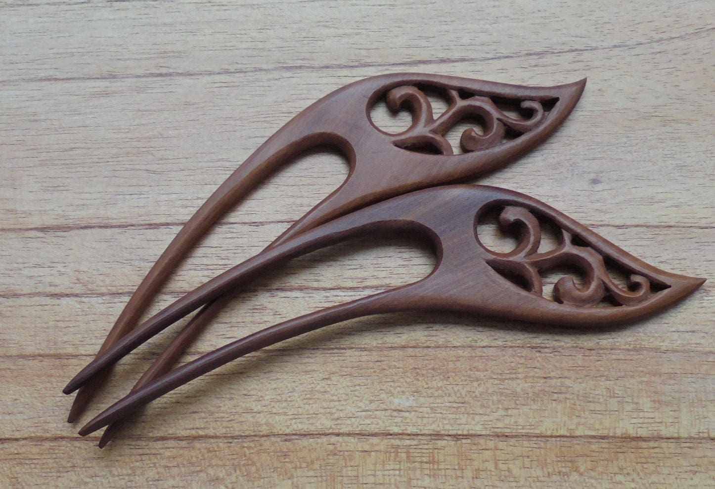 2-Prong Organic Wooden Hair Stick – Handmade Saba Wood Hair Fork and Hair Pin