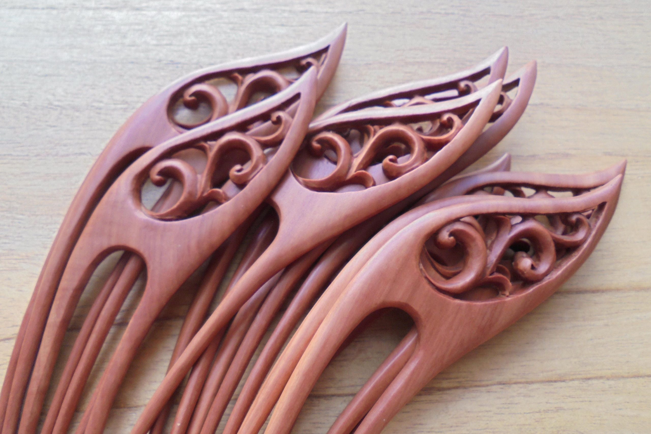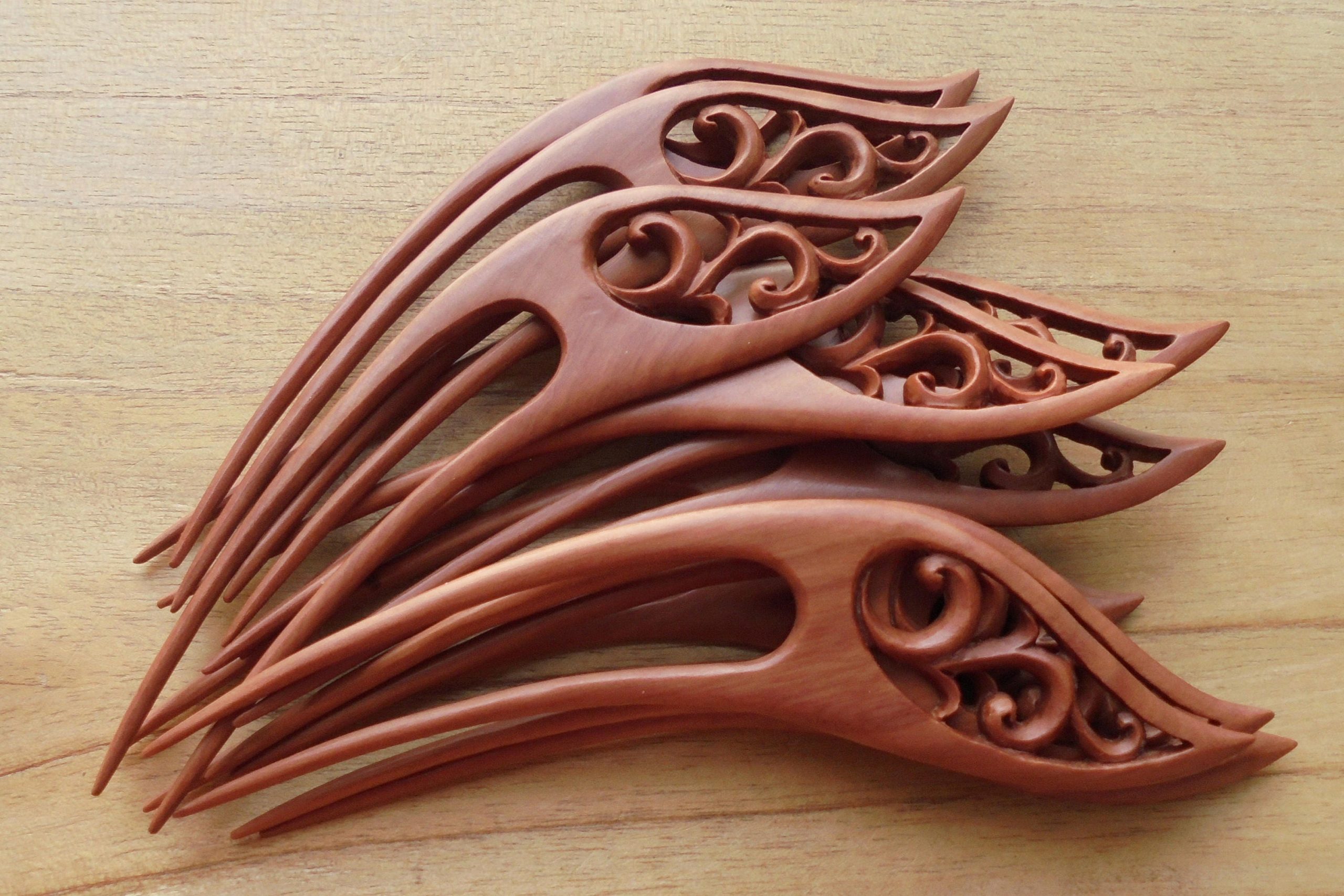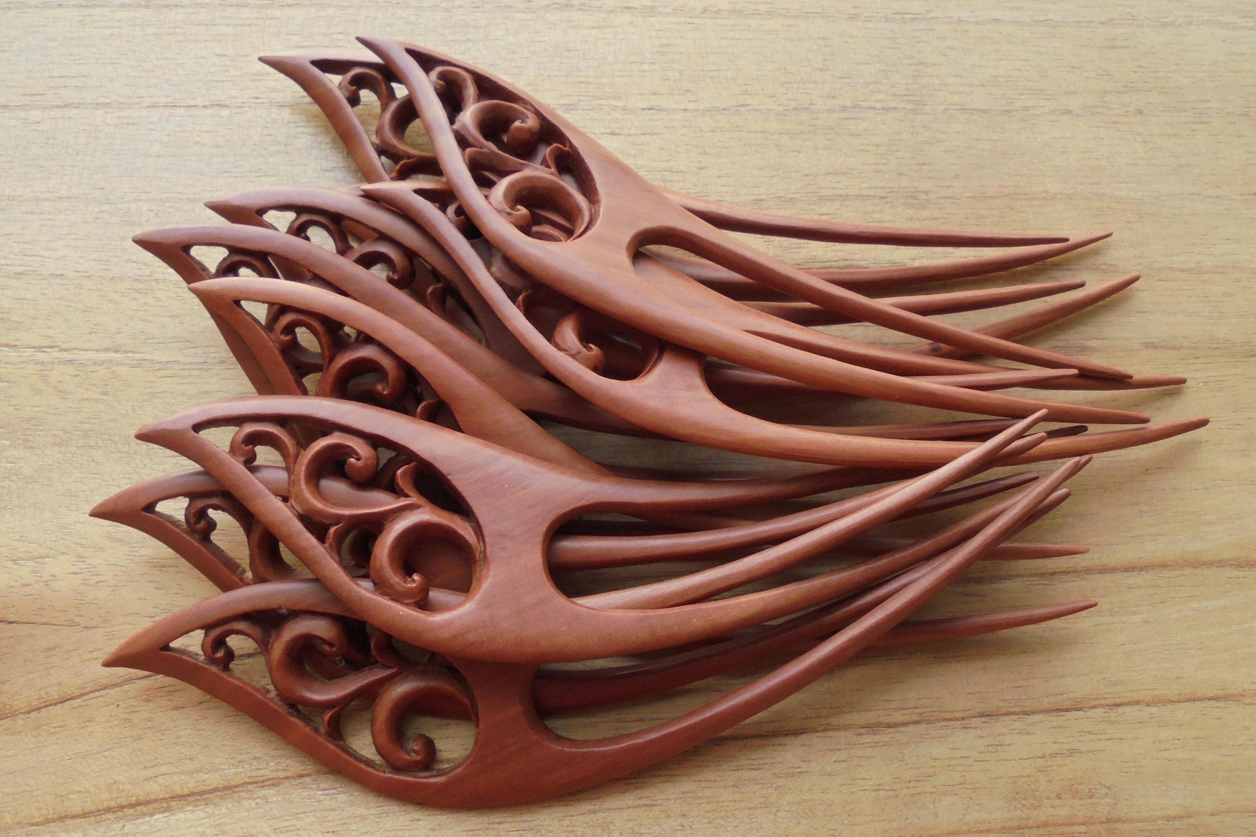 2-Prong Organic Wooden Hair Stick – Handmade Saba Wood Hair Fork and Hair Pin