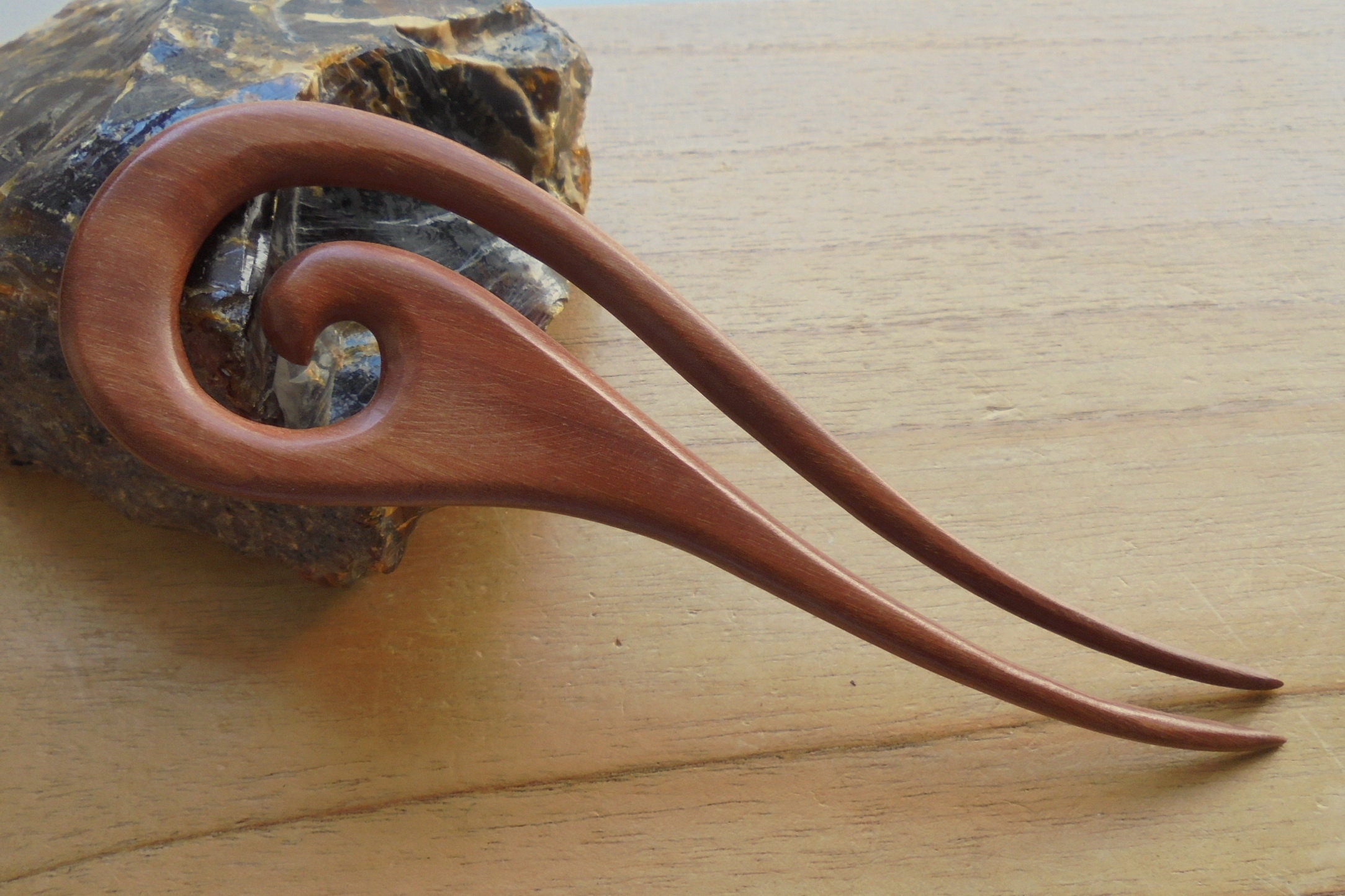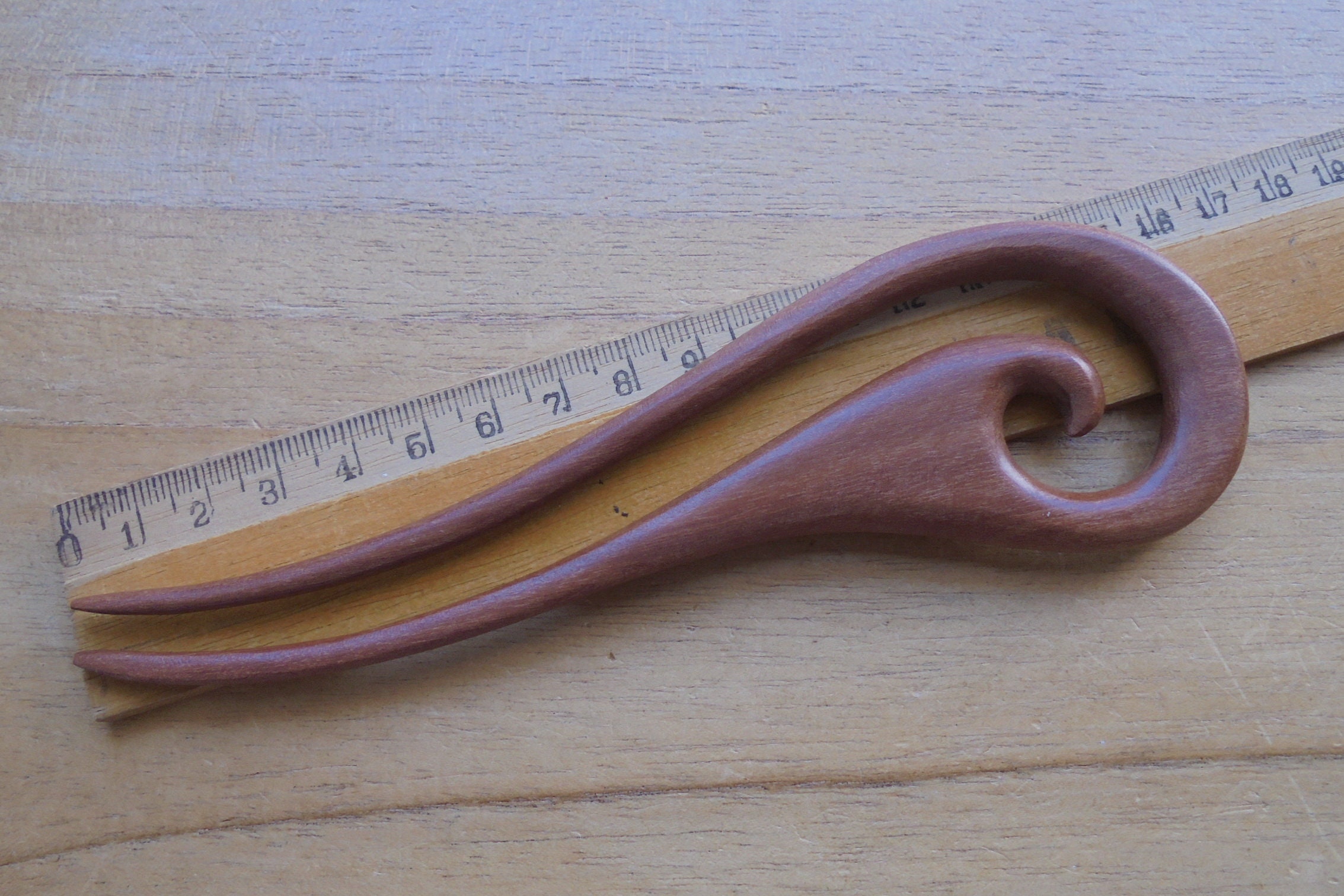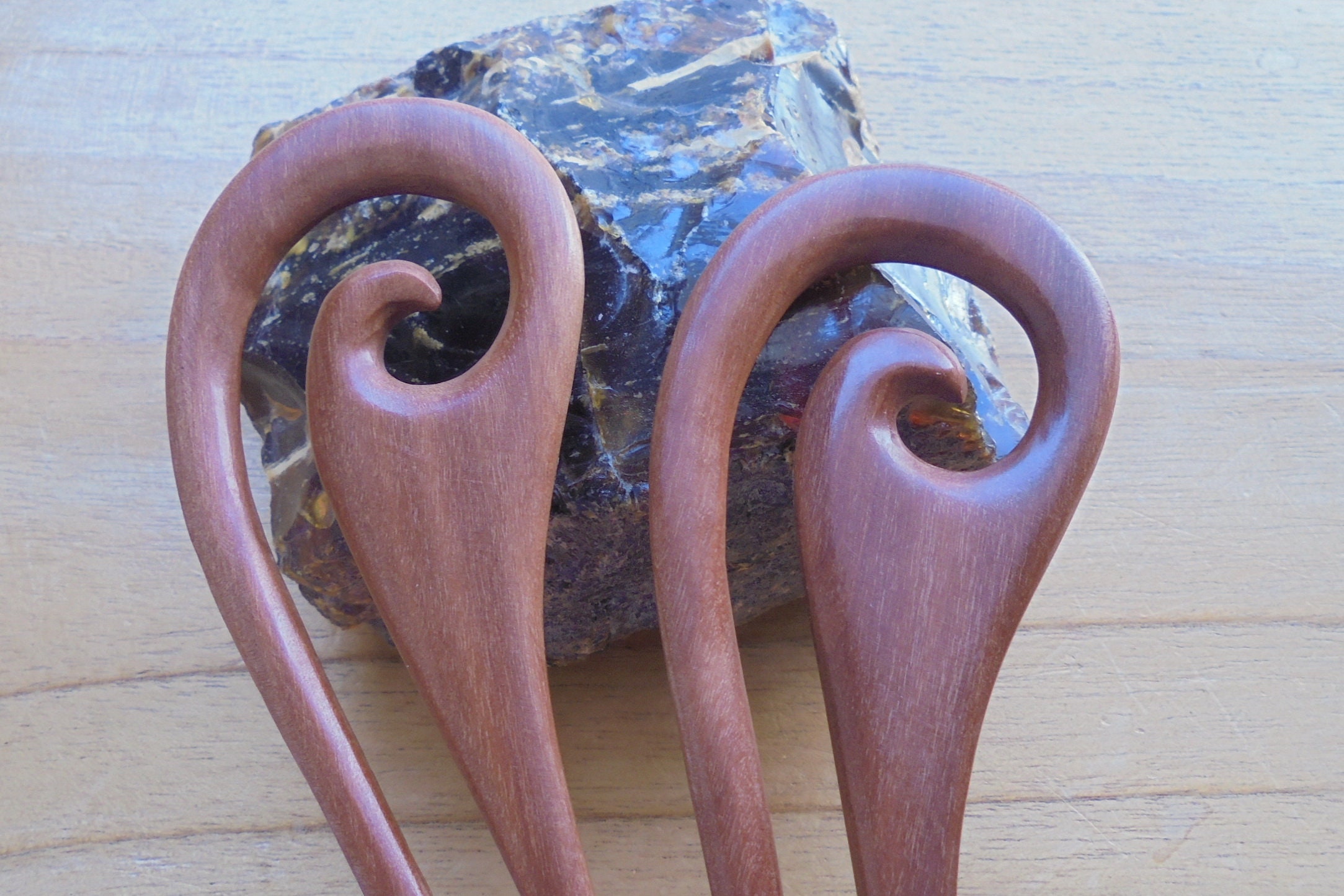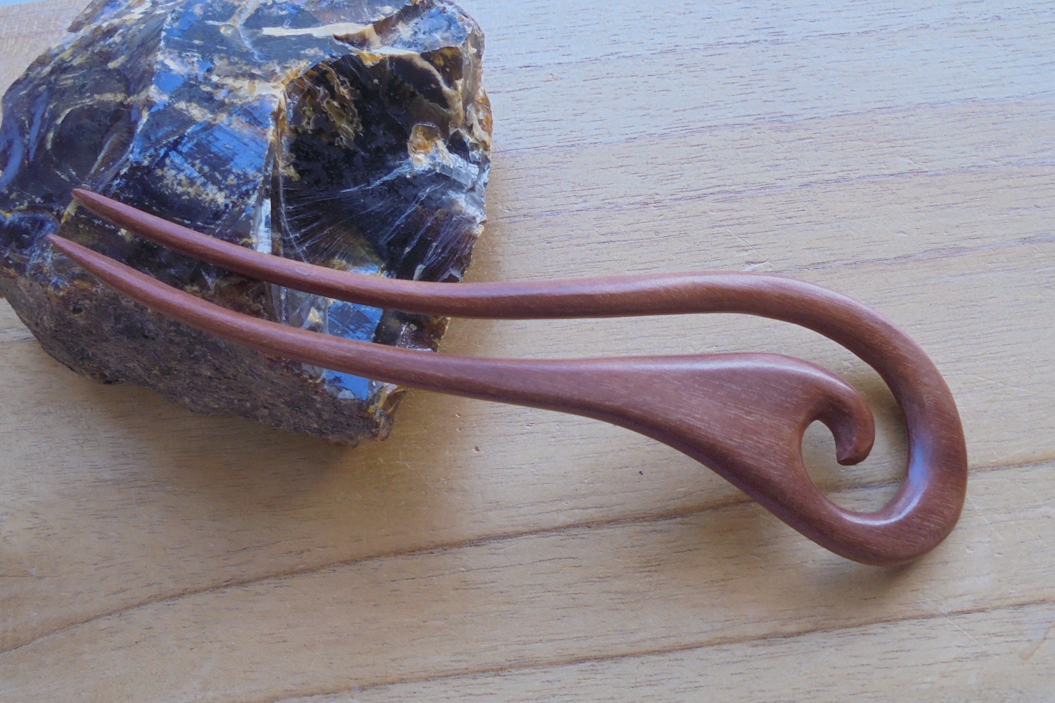 2-Prong Spiral Wooden Hair Stick – Handmade Saba Wood Hair Fork and Hair Pin