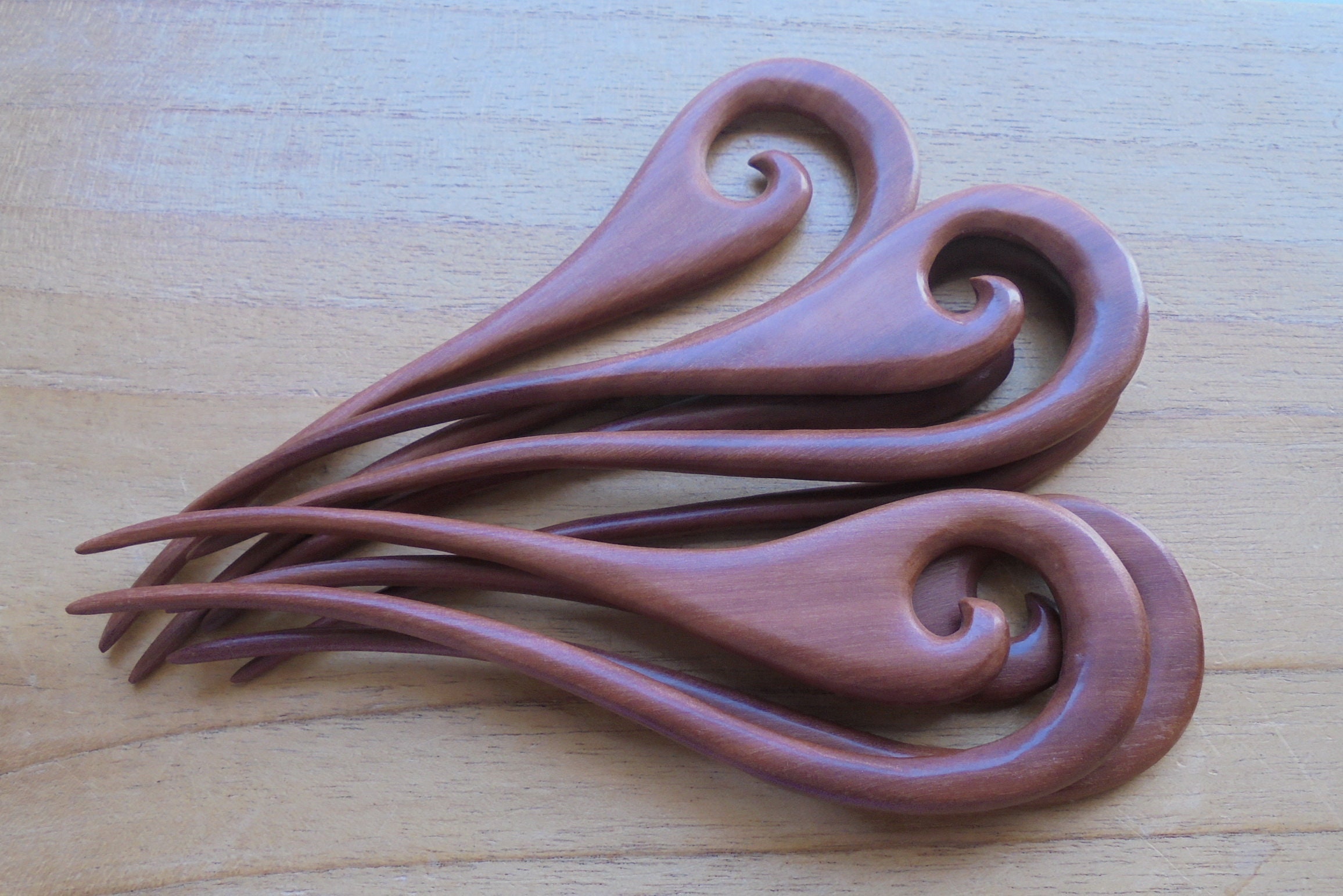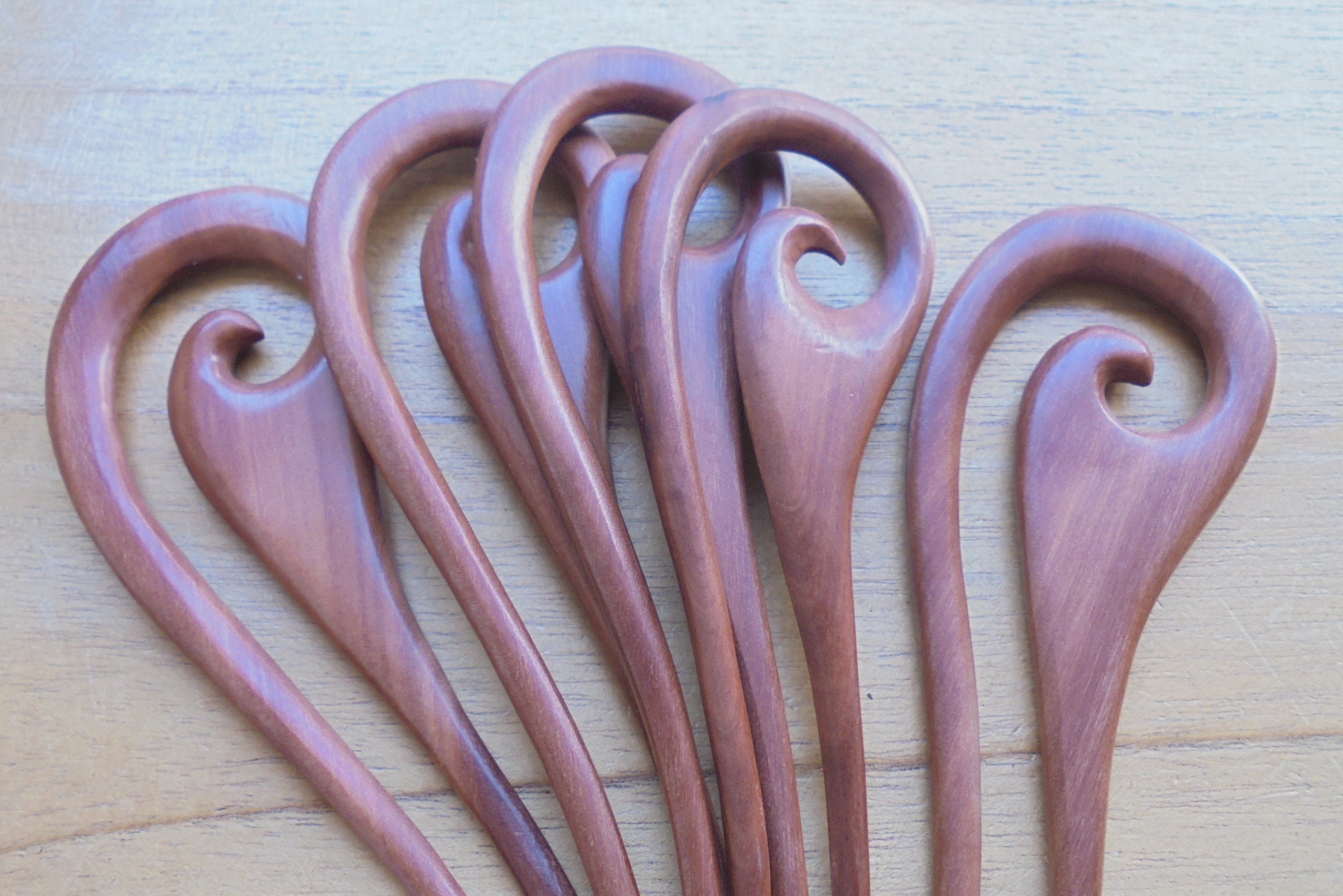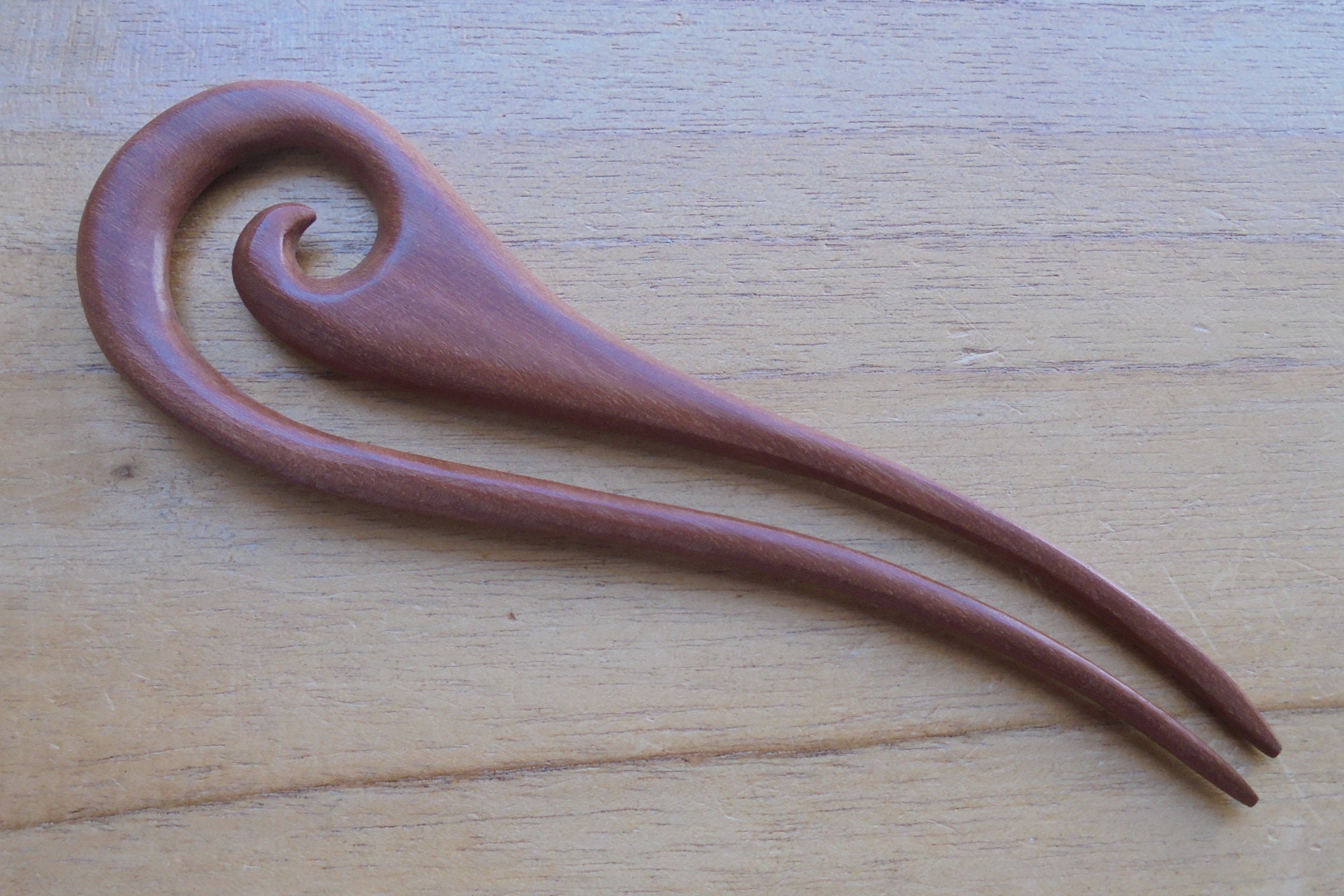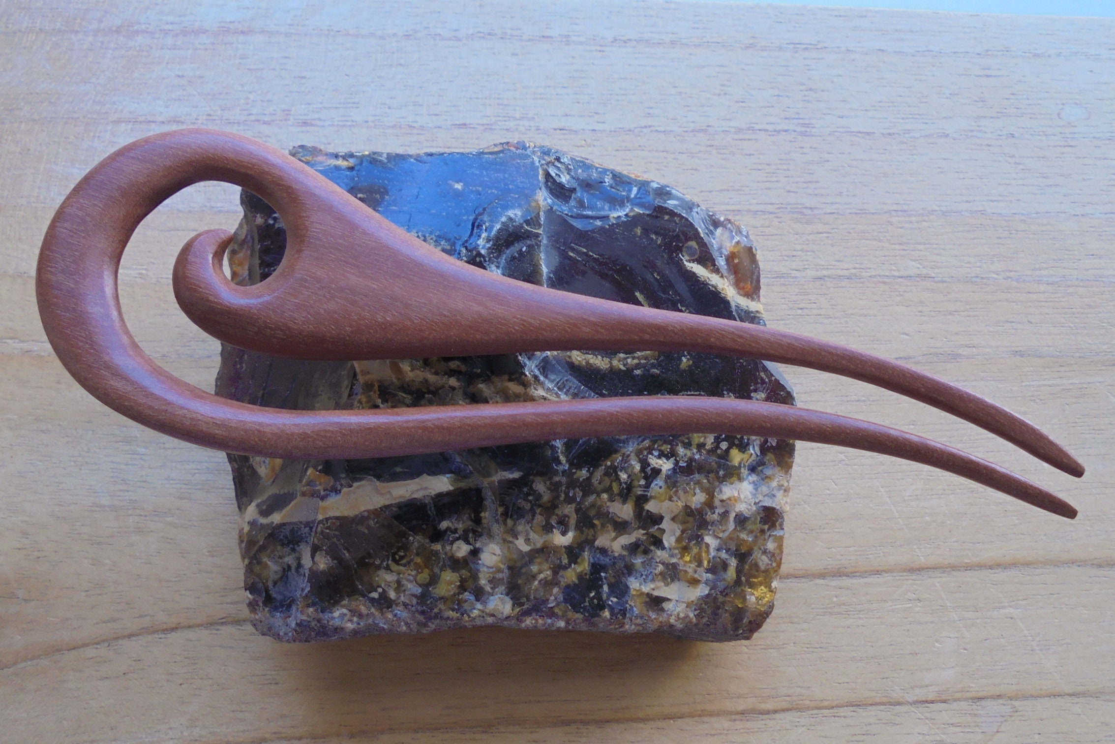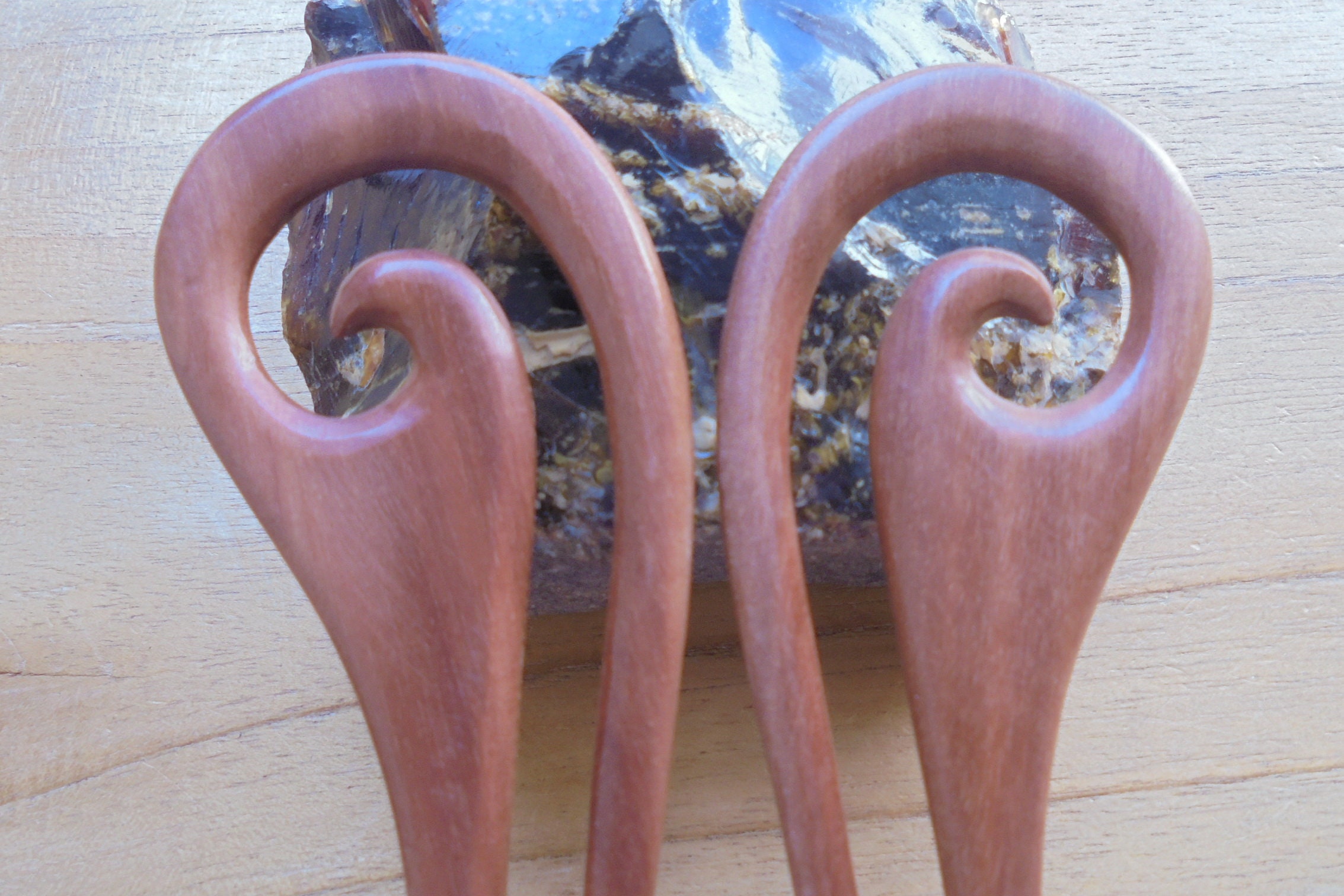 2-Prong Spiral Wooden Hair Stick – Handmade Saba Wood Hair Fork and Hair Pin