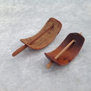 Pair of handmade hair clips crafted from Moroccan araar wood, a member of the cedar family with a naturally pleasant fragrance. Each clip is carefully French polished for a smooth and durable finish. The natural cedar scent helps deter moths. Sold as a set of two. Each piece is individually crafted with natural variations in wood grain and tone.
