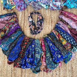 Be the first to review “Recycled Silk Sari Headband Set – Boho Cross Hair Wrap, Set of 2” Cancel reply