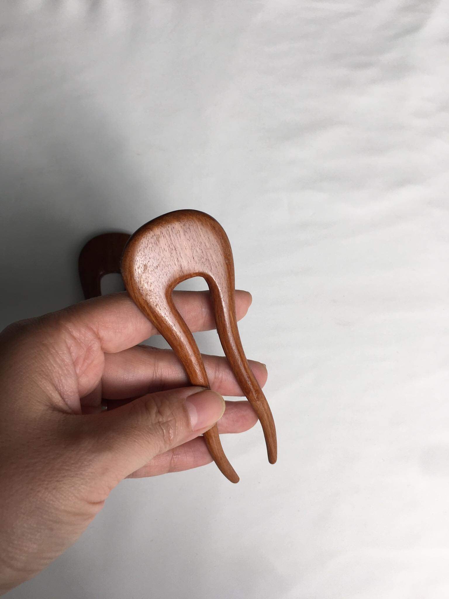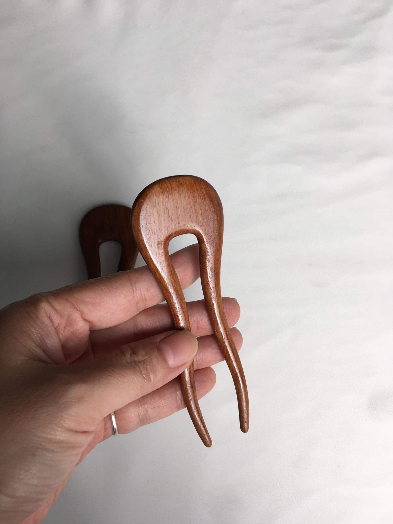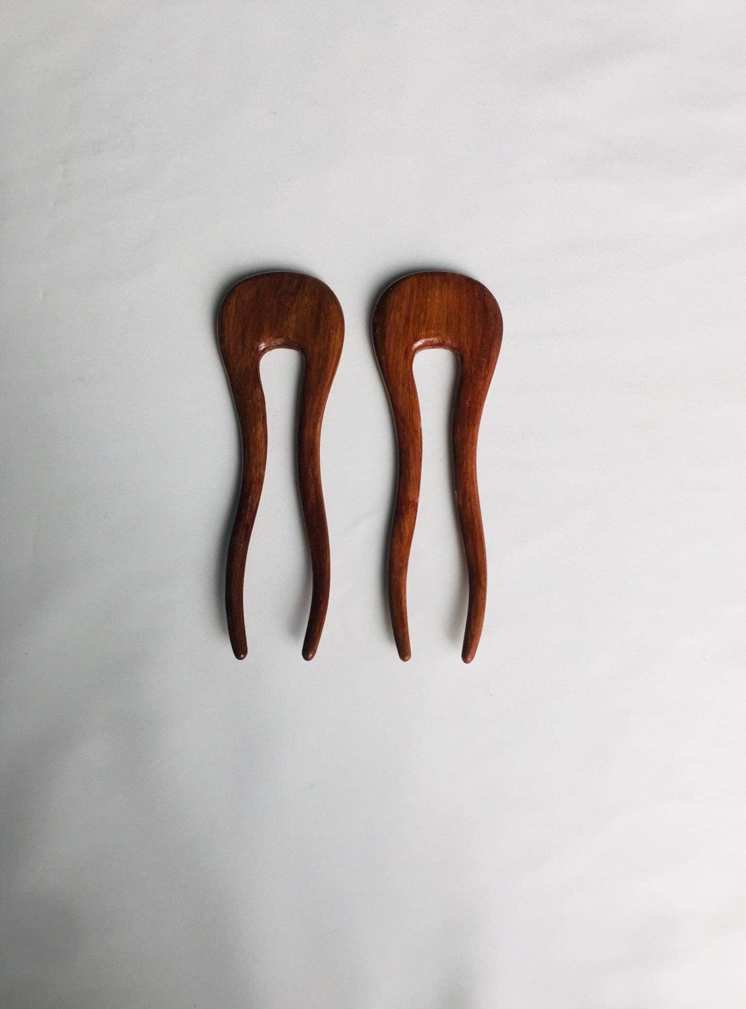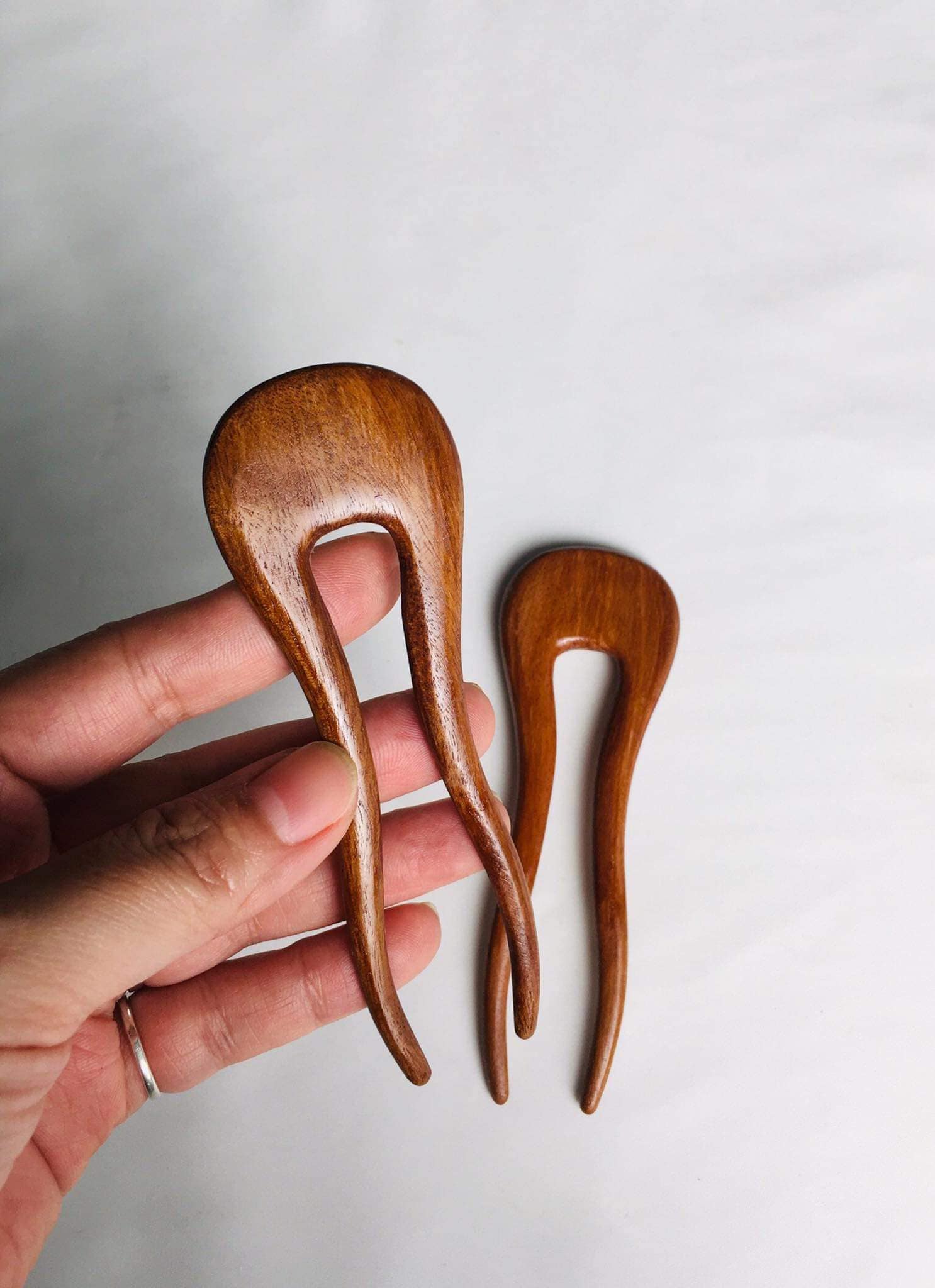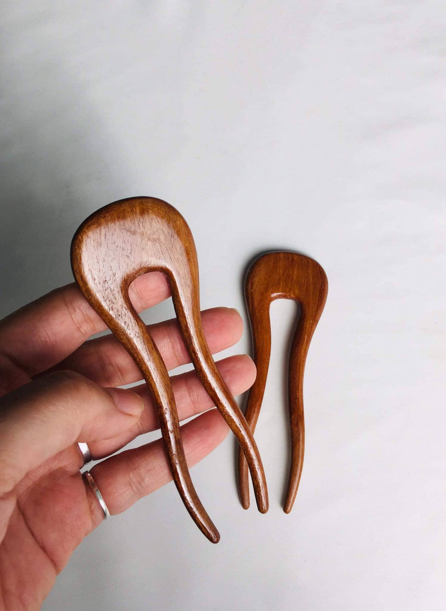 2-Prong Organic Wooden Hair Stick – Handmade Saba Wood Hair Fork and Hair Pin